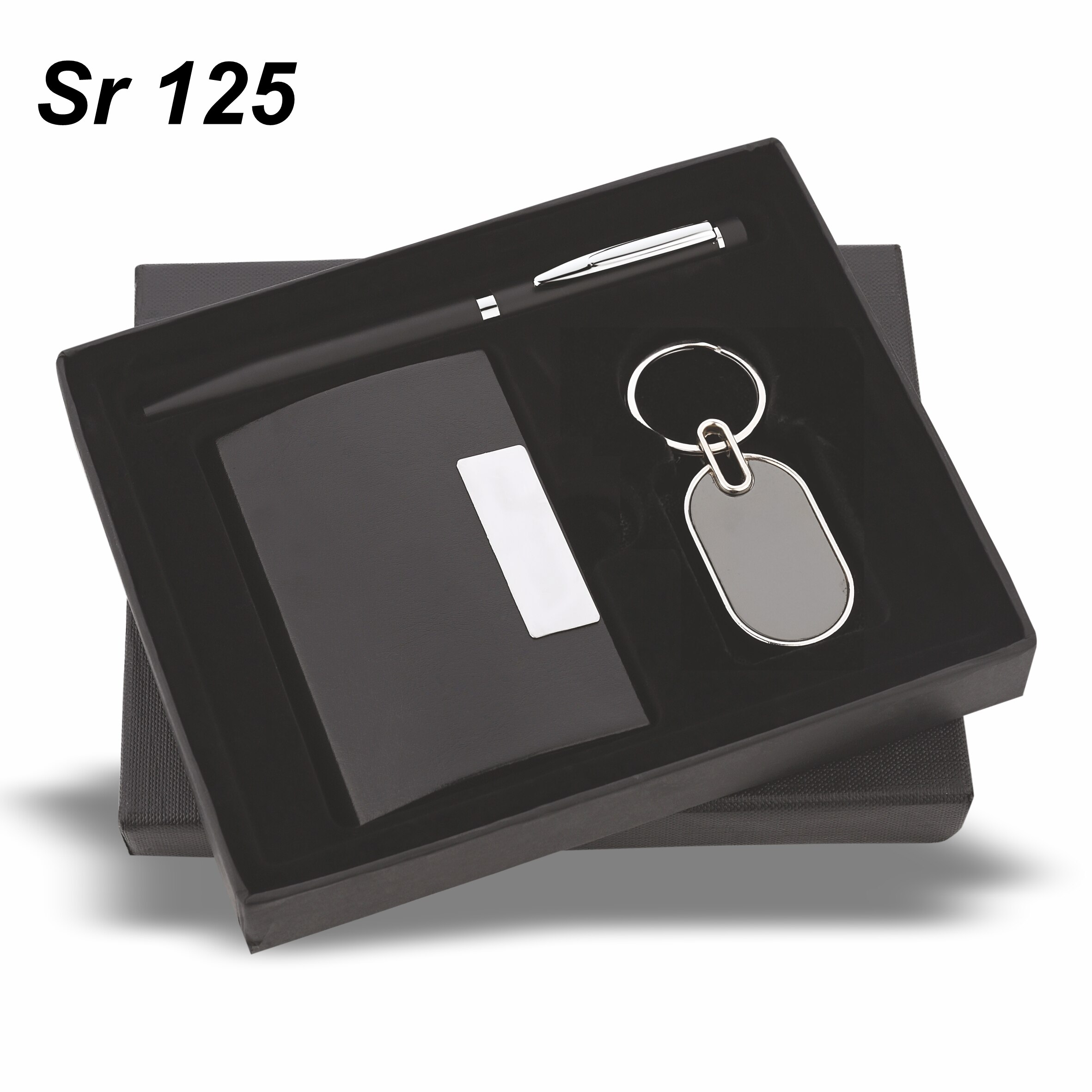 Elevate your corporate gifting with our sophisticated three-piece set, designed for the modern professional. This elegant collection includes a high-quality metal pen for smooth writing, a durable keychain, and a sleek cardholder to keep business essentials organized. Each item is crafted with a premium finish, making it the perfect way to show appreciation to clients, partners, and employees. The set comes presented in a refined gift box, ready for personalization with your company's logo. A timeless and practical gift that makes a lasting impression.