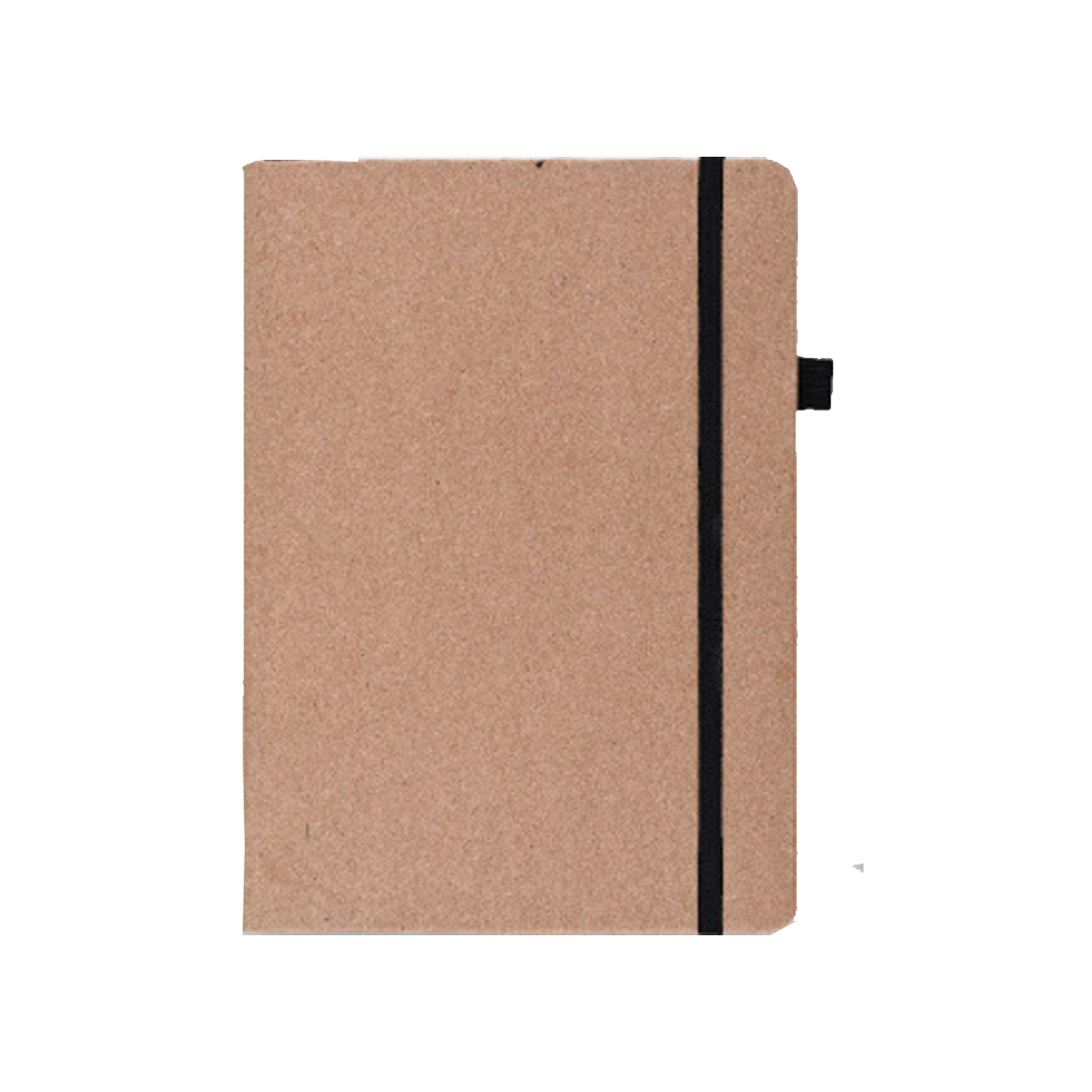 This eco-friendly notebook features a natural kraft paper cover and a black elastic band closure. Its rustic yet professional design is perfect for those who appreciate sustainable and minimalist stationery. Ideal for notes, sketches, or as a promotional item.