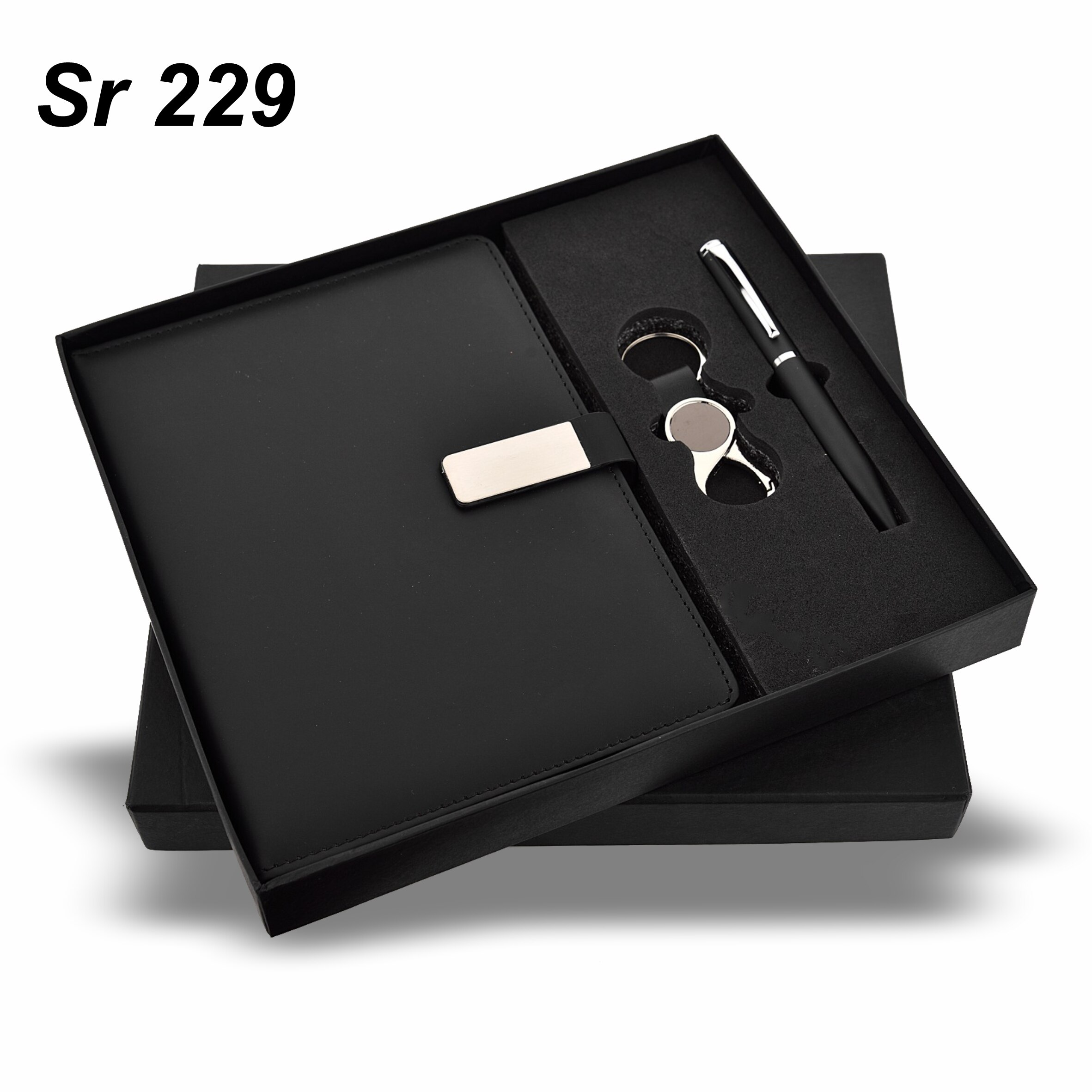 Equip professionals with the tools for success with our Executive Organizer Gift Set. This sophisticated set includes a high-quality black notebook with a secure silver clasp, perfect for meetings and notes. Accompanying it is a sleek black pen with silver detailing, ensuring a smooth writing experience. A matching keychain with silver accents completes the set, keeping essentials easily accessible. All items are elegantly presented in a black gift box, making it an ideal gift for corporate events, new hires, or valued clients. Help them stay organized and make a lasting impression.