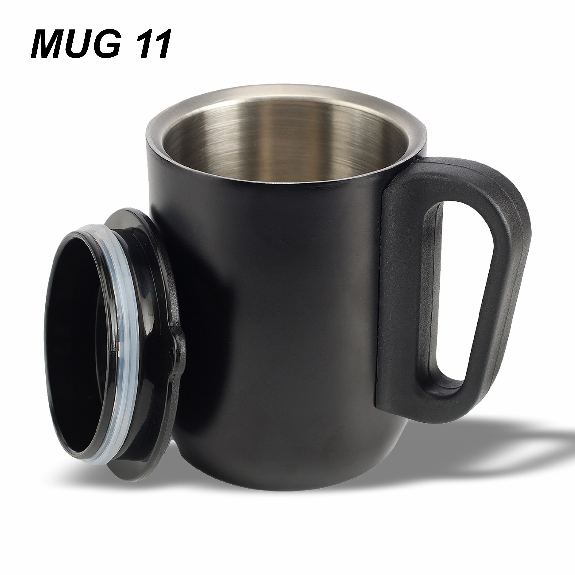 This stylish and durable coffee mug is the perfect companion for your daily brew. Made with a high-quality stainless steel interior, it keeps your beverages hot or cold for hours. The sleek black exterior, combined with a comfortable handle and a secure lid with a silicone seal, makes it an ideal choice for the office or on the go. Available in Multi Color Option