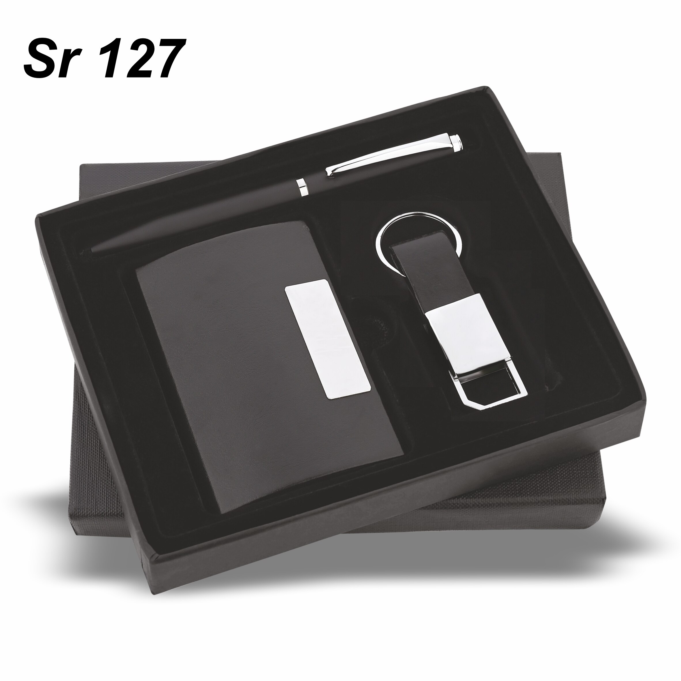 Make a lasting impression with our Modern Executive Gift Set, a perfect blend of style and practicality. This sophisticated trio features a sleek black pen with polished silver accents, a matching black cardholder, and a stylish keychain with a modern design. Each piece is crafted to be both a useful tool and a professional accessory. The entire set is presented in an elegant black gift box, making it an ideal choice for corporate gifting, client appreciation, or as an employee welcome kit. This set is a testament to refined taste and attention to detail.