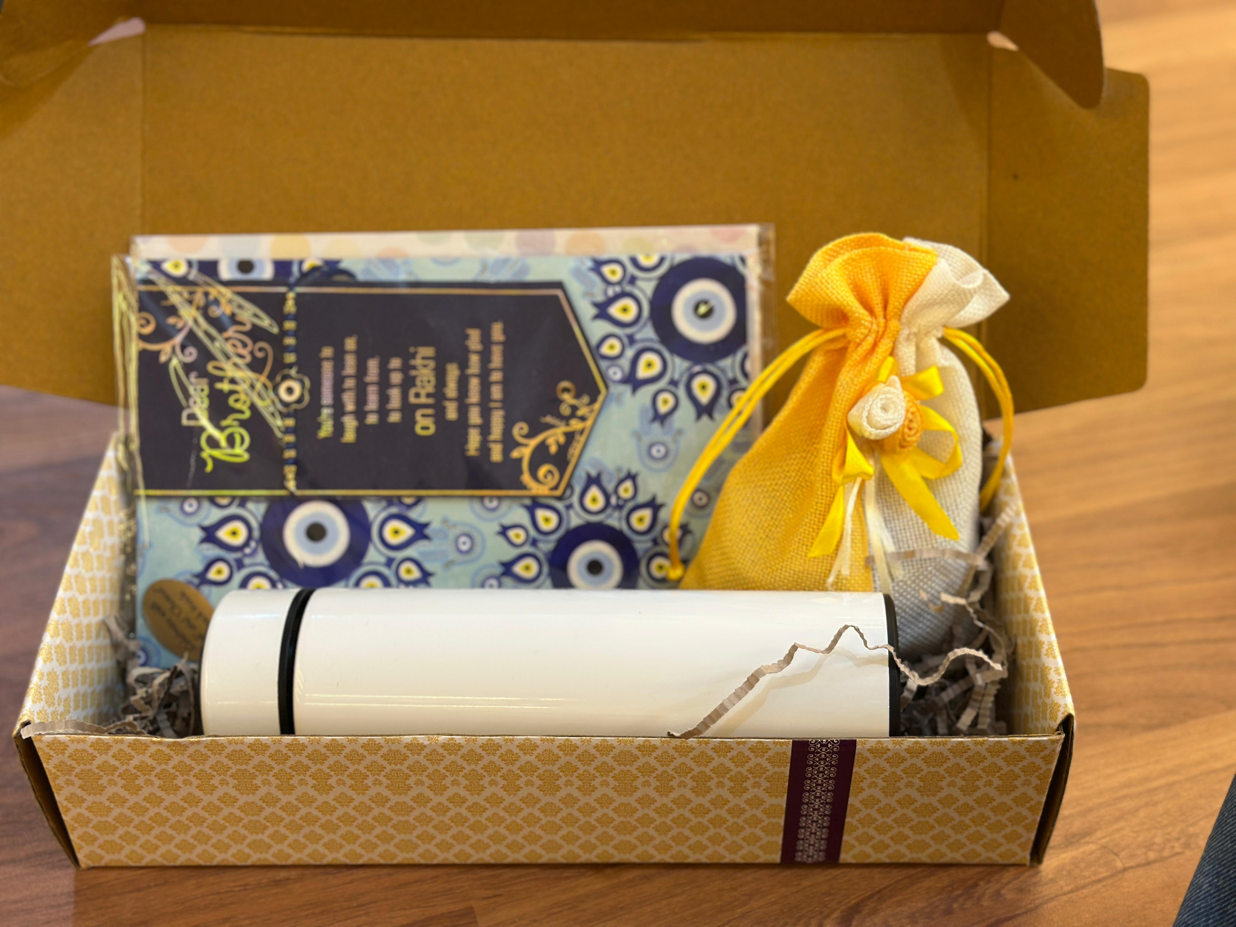 Make your Raksha Bandhan gifting smarter and more memorable! This modern combo includes: 1. Rakhi 2. Smart LED Temperature Bottle with Name Customization 3. Chocolate Potli 4. Roli Chawal Set 5. Rakhi Envelope ✨ A perfect mix of tradition and innovation. 💰 Price: ₹740 📦 For Bulk Orders: Connect with us directly.
